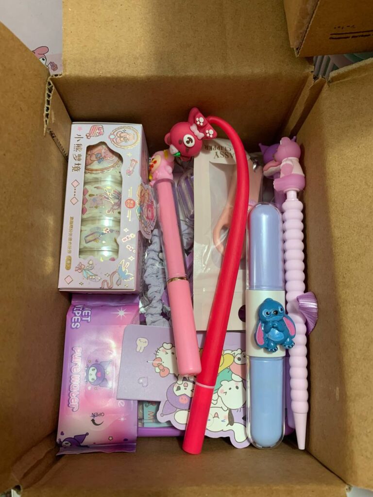 ایتم های پک ما شامل لوازم تحریر فانتزی ، اکسسوری، بدلیجات و ارایشی و بهداشتی هستش
